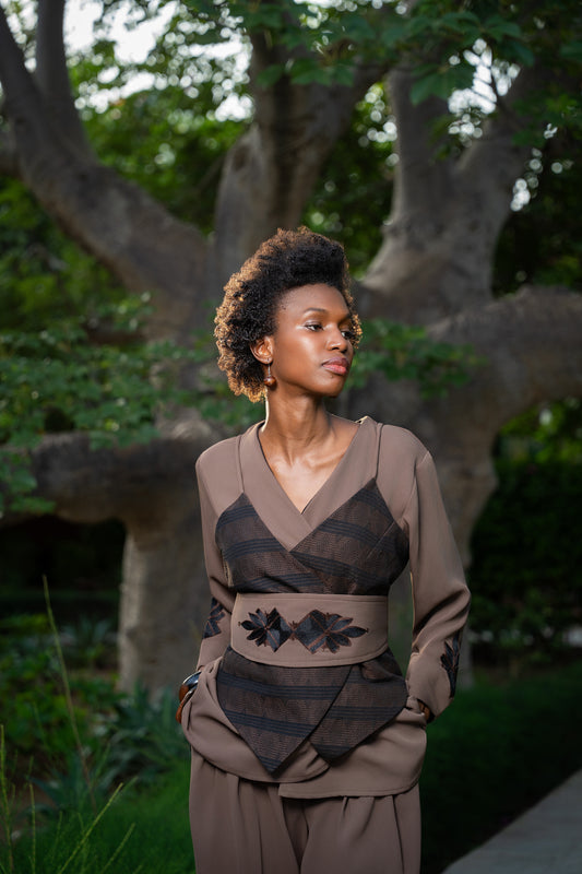 Maya Luxury Sculptural Crop Blazer | Handwoven Pagne Tissé