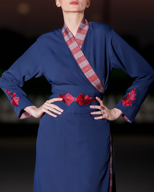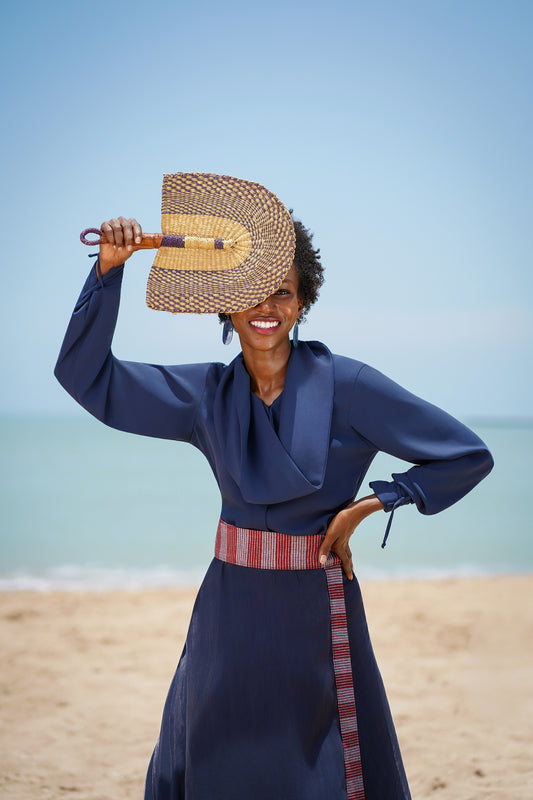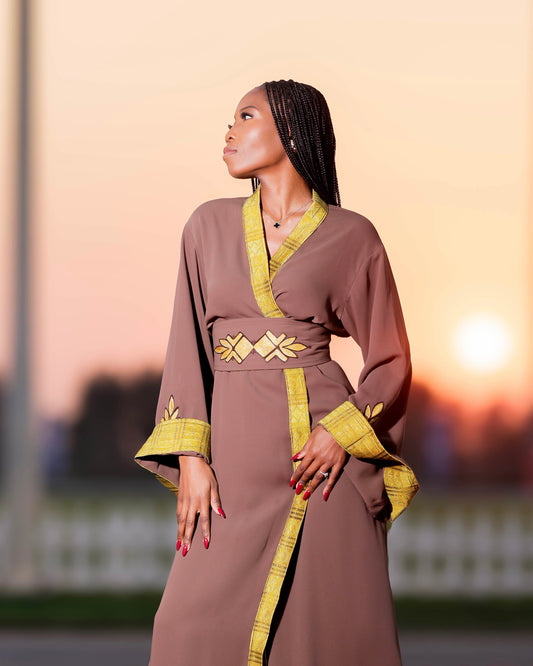 Linguère Elegant Wrap Kimono Dress with Handwoven Pagne Tissé