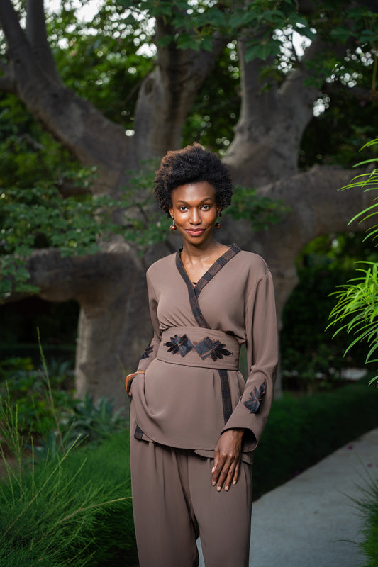 Aline set | Tailored two-piece set with handwoven accents and embroidery details