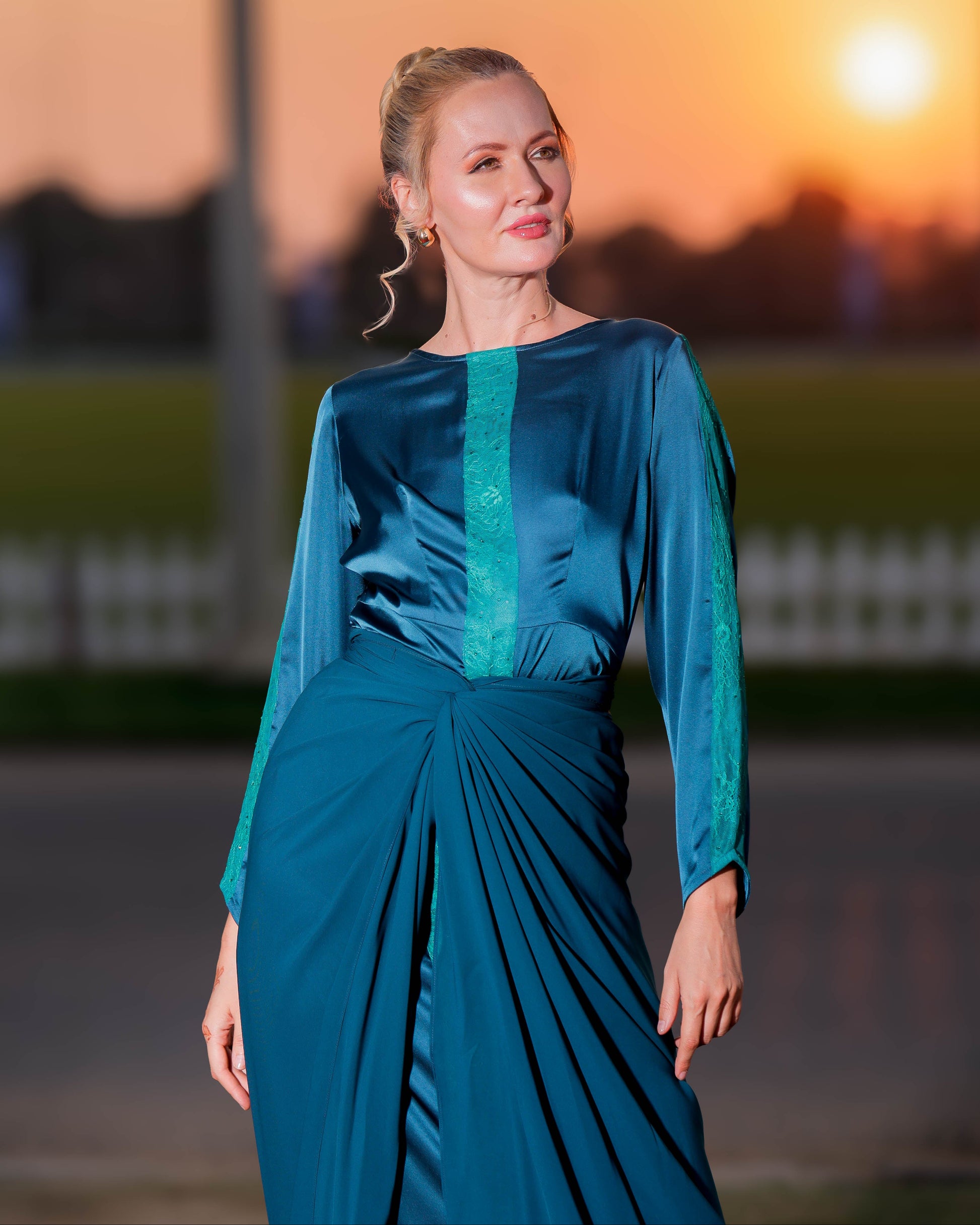Indulge in the ultimate luxury with our Hafsa set. The satin dress features delicate lace details, while a delicate chiffon overlay adds versatility - wear it in multiple ways. Elevate your style with this exclusive and elegant piece.