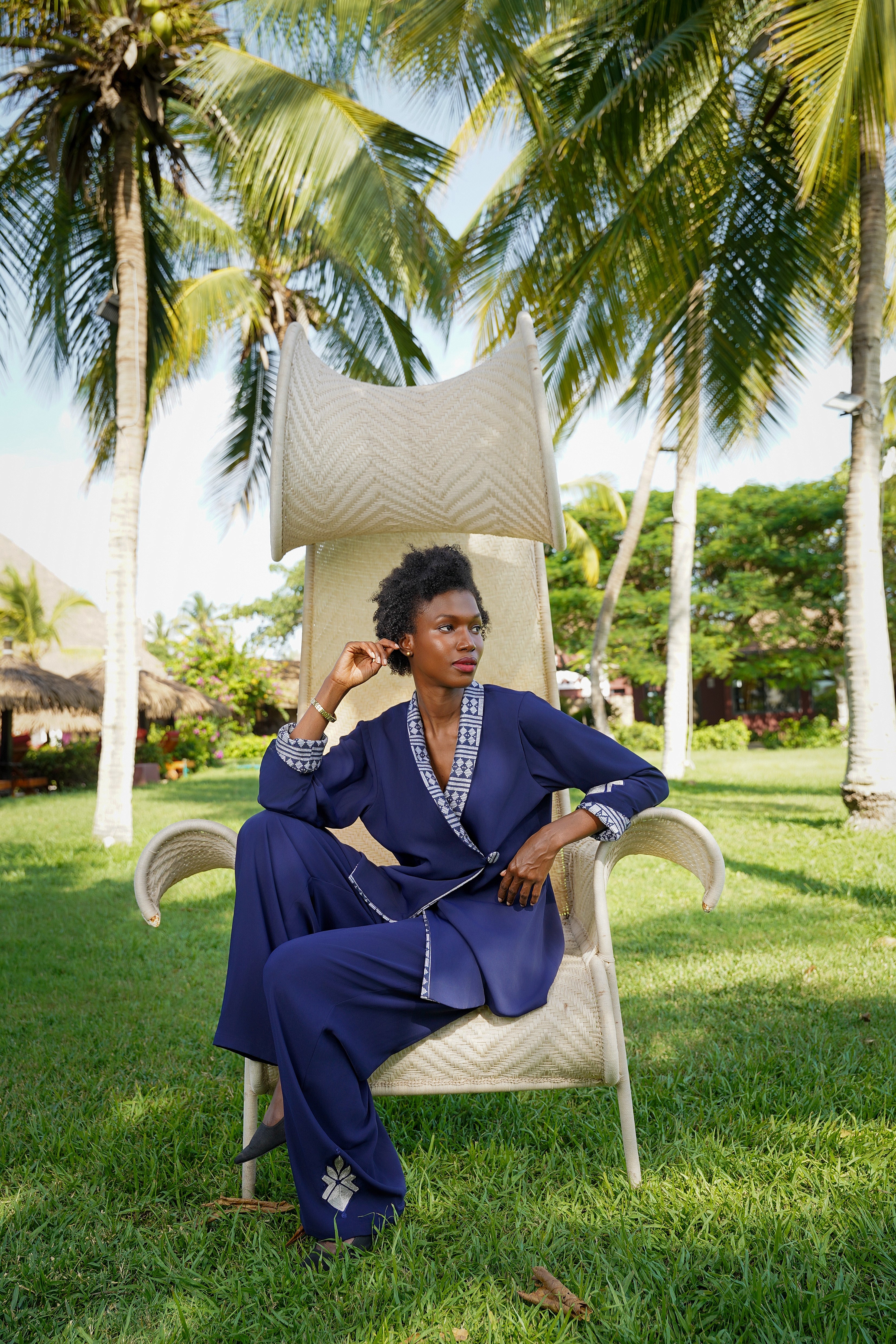 - Artisanal Heritage: Premium Italian crepe paired with authentic, handwoven Senegalese pagne tissé.