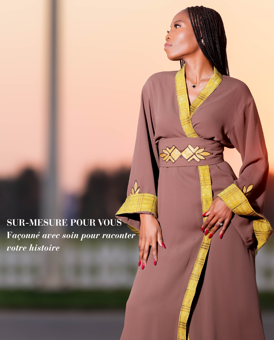 I ordered the Khadija dress set in custom pine green color and I love it ! The color is exquisite, the fabric soft and fluid, the design chic and classy. A gorgeous dress that definitely made me feel special!