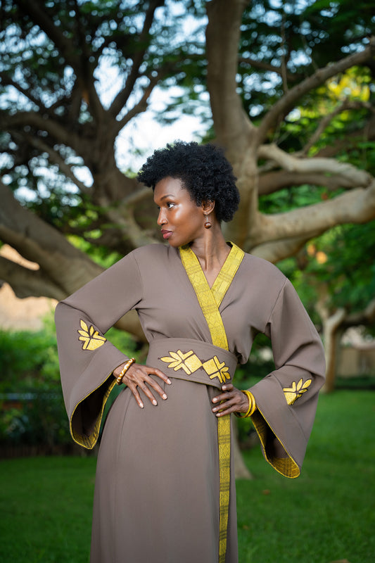 I ordered the Khadija dress set in custom pine green color and I love it ! The color is exquisite, the fabric soft and fluid, the design chic and classy. A gorgeous dress that definitely made me feel special!