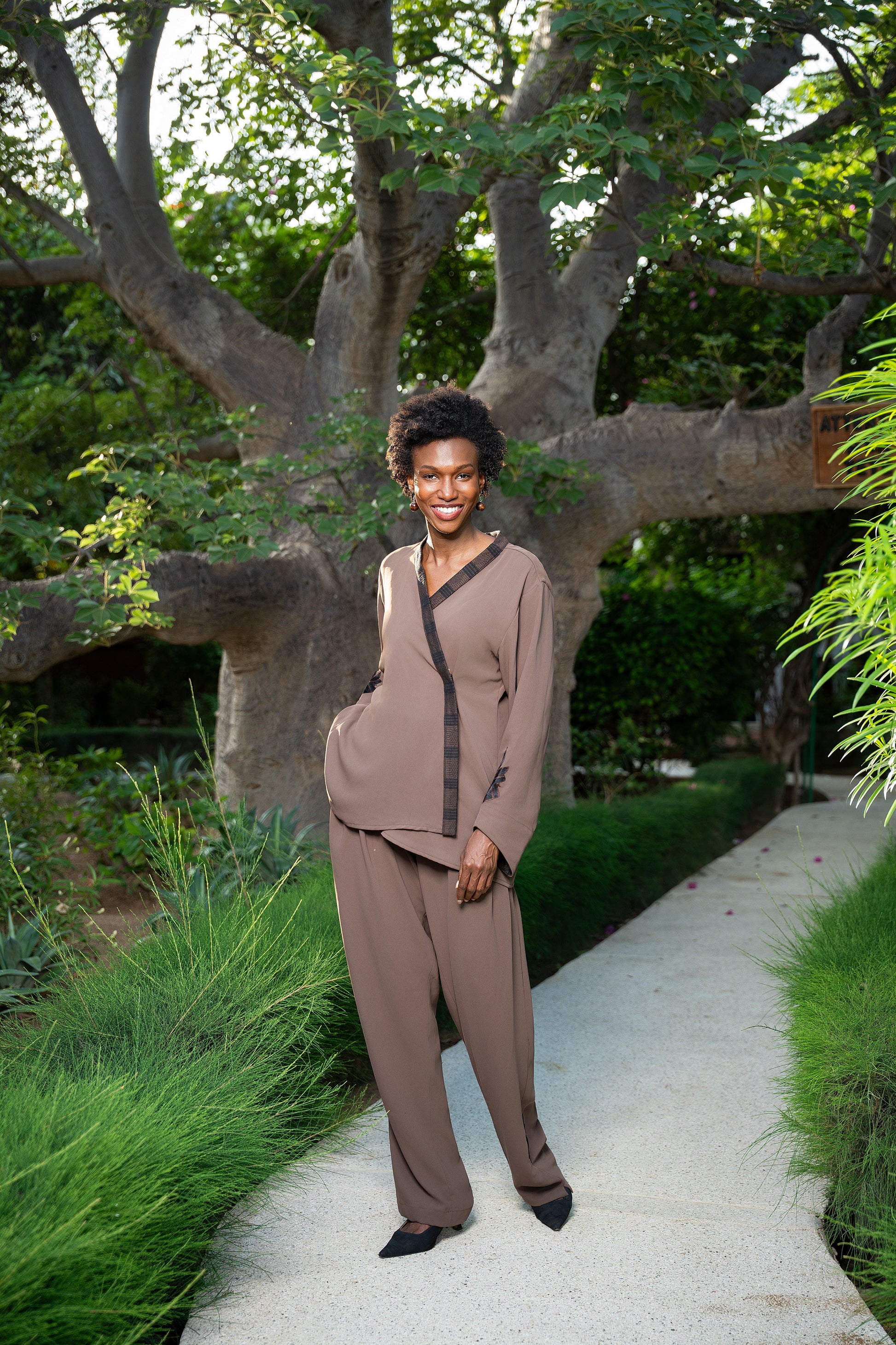 A cocoa-brown set crafted for versatility and grounding elegance. Finished with bold black pagne tissé details, Sogolon blends comfort, strength, and cultural depth — a wardrobe essential with character.