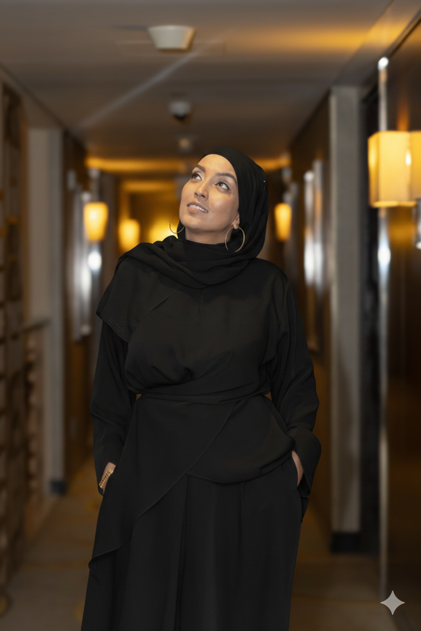 Designed with inclusivity in mind, the Zaha Essential Modest Coord Set features adjustable elements to provide a customized fit for all sizes.